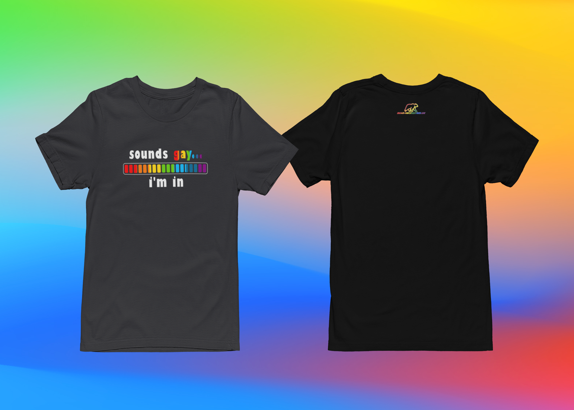 • Pride Flag, Bear Flag, Pink Camo and Green Camo Printed in High Quality DTV on the front and back with our famous Bear-Necessitees logo